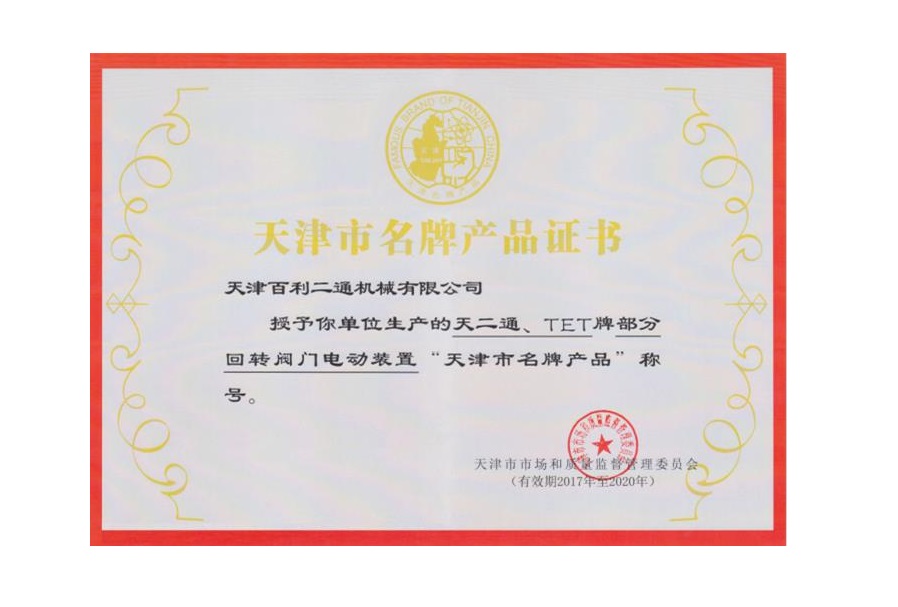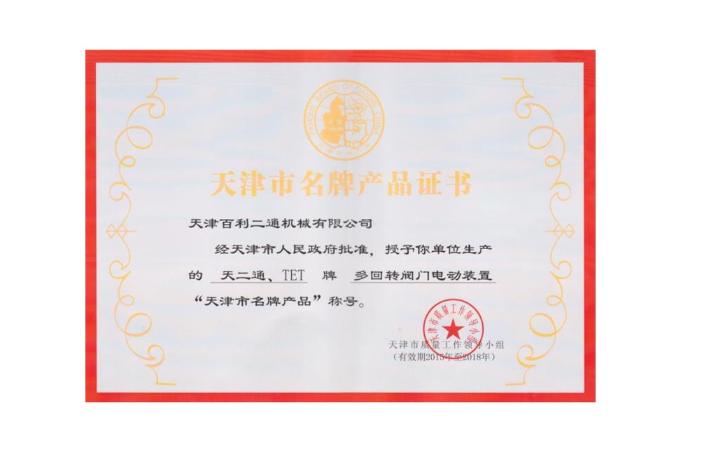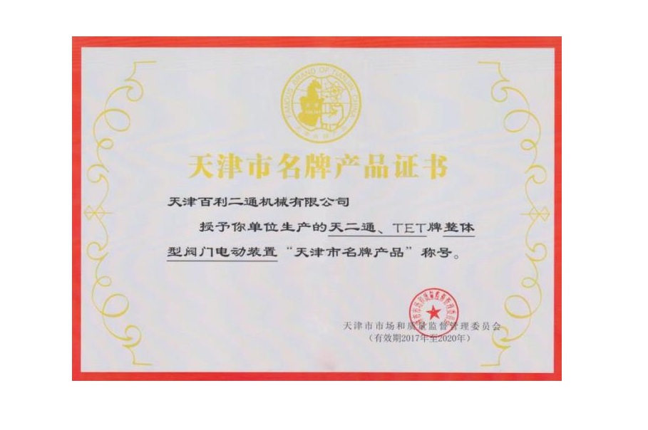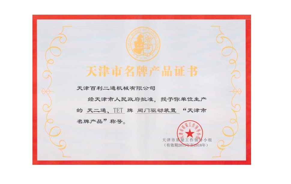閥門驅動裝置名牌產品證書