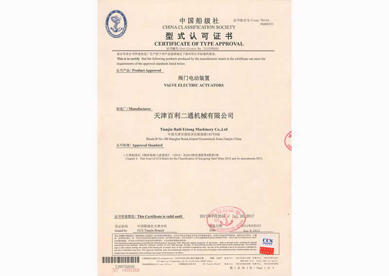 中國船級社型式認(rèn)可證書