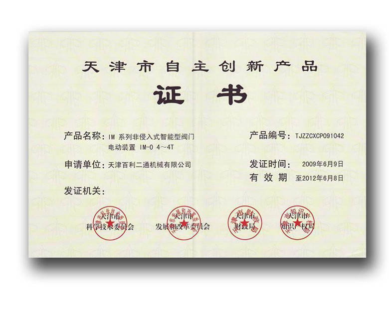 IM系列自主創(chuàng)新產(chǎn)品證書(shū)
