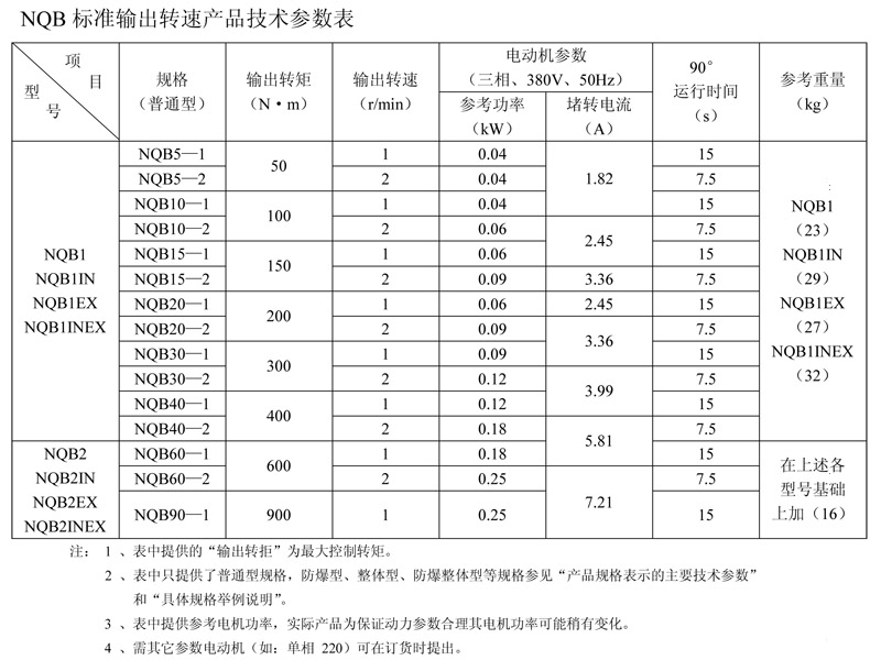 NQB1、 NQB2 電動(dòng)裝置在繼承QB1、QB2 優(yōu)點(diǎn)的同時(shí)又增設(shè)了產(chǎn)品的使用功能,它適用于小口徑球閥、蝶閥、旋塞閥等閥瓣工作中90°回轉(zhuǎn)閥門和類似機(jī)構(gòu)的控制。該產(chǎn)品與閥門組合后可廣泛地應(yīng)用于石油、化工、電力、市政、冶金、食品、輕工等工業(yè)領(lǐng)域的管道控制系統(tǒng)。 QBR3~QBR5是我公司研制的部分回轉(zhuǎn)閥門電動(dòng)裝置,控制轉(zhuǎn)矩范圍:900N.m~12000N.m。該電動(dòng)裝置可與球閥﹑蝶閥等閥瓣做90°回轉(zhuǎn)的閥門組合成電動(dòng)閥門,其功能是控制閥門的啟閉。