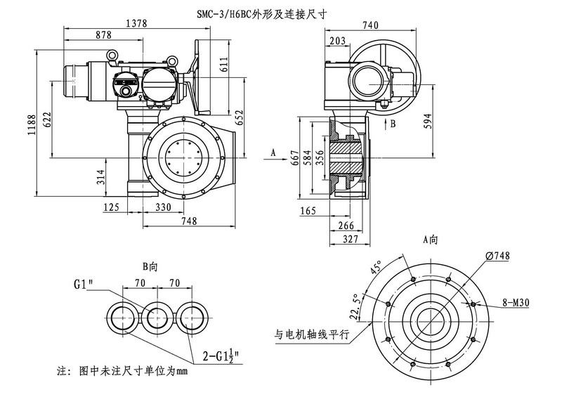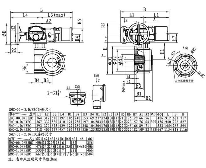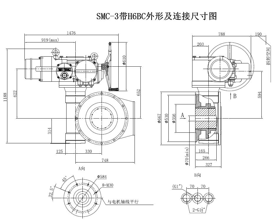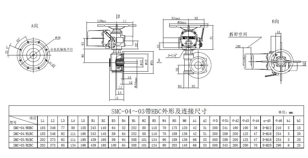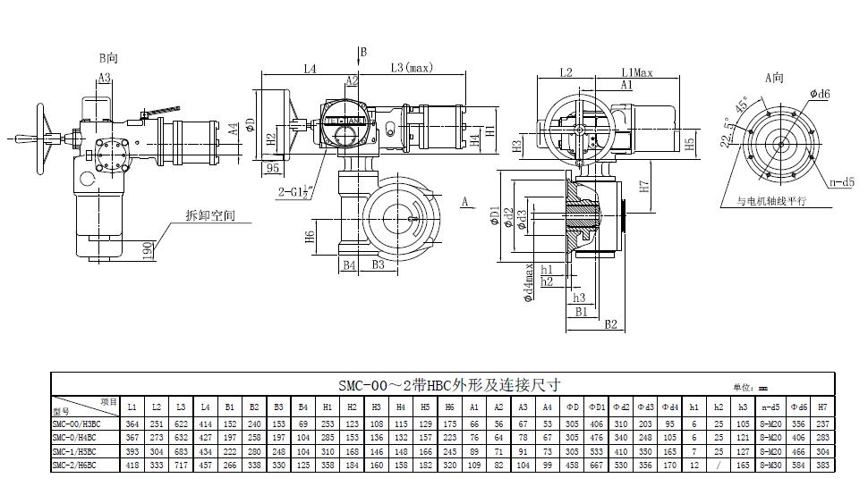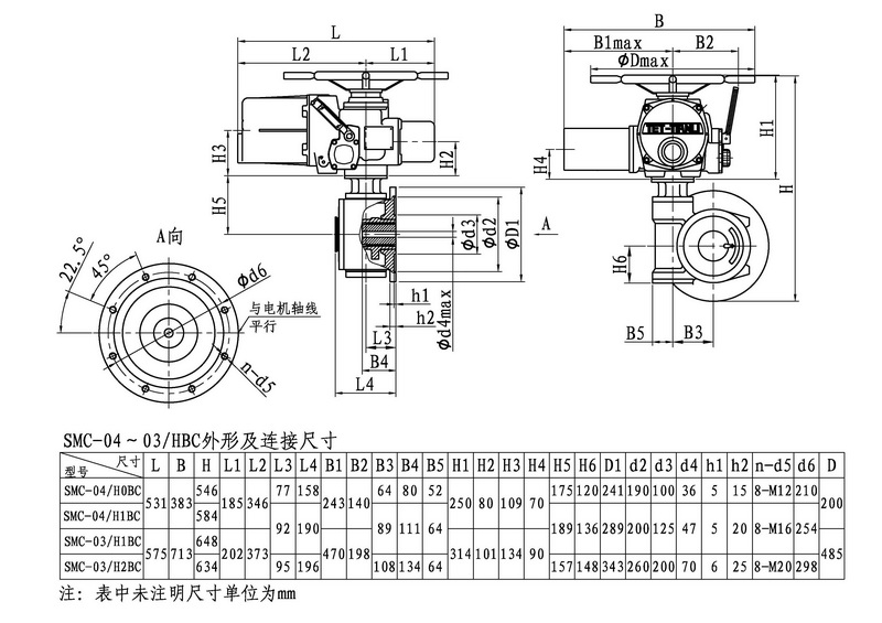 SMC/HBC系列電動裝置是SMC系列多回轉(zhuǎn)電動裝置與HBC蝸輪減速器的組合型式,它適合球閥、蝶閥等部分回轉(zhuǎn)閥門的驅(qū)動控制。SMC/HBC電動裝置具有以下特點:結(jié)構(gòu)設計堅固可靠,產(chǎn)品規(guī)格齊全,驅(qū)動轉(zhuǎn)矩范圍大且動力輸出穩(wěn)定, 具有良好的自鎖性能。 HBC輸出軸結(jié)構(gòu)獨特,裝有與閥桿連接的漸開線花鍵接頭,產(chǎn)品的安裝調(diào)試方便。