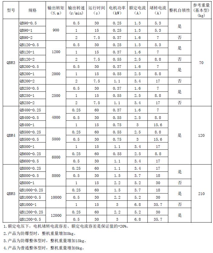 QBR3~QBR5是我公司研制的部分回轉(zhuǎn)閥門電動裝置,控制轉(zhuǎn)矩范圍:900N.m~12000N.m。該電動裝置可與球閥﹑蝶閥等閥瓣做90°回轉(zhuǎn)的閥門組合成電動閥門,其功能是控制閥門的啟閉。該電動裝置能夠進(jìn)行單機(jī)或多機(jī)室內(nèi)控制遠(yuǎn)距離控制電動操作和現(xiàn)場手動或電動操作,可廣泛地應(yīng)用在具有管道閥門的工業(yè)系統(tǒng)。該產(chǎn)品的防護(hù)等級為IP67,隔爆型產(chǎn)品(型號中有Ex)的隔爆等級 為dⅡBT4。