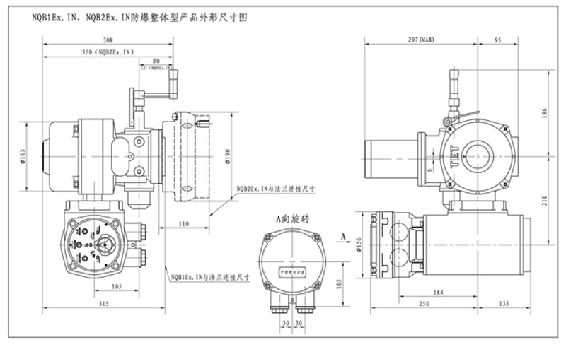 NQB1、 NQB2 電動裝置在繼承QB1、QB2 優點的同時又增設了產品的使用功能,并且改進了控制機構。通過改型設計的 NQB1、NQB2 電動裝置不僅提高了整體性能并且更實用、可靠。 NQB1、 NQB2 電動裝置的定位仍為經濟型,它適用于小口徑球閥、蝶閥、旋塞閥等閥瓣工作中90°回轉閥門和類似機構的控制。該產品與閥門組合后可廣泛地應用于石油、化工、電力、市政、冶金、食品、輕工等工業領域的管道控制系統。