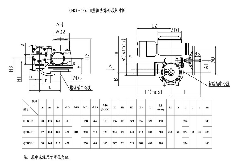 QBR3~QBR5是我公司研制的部分回轉(zhuǎn)閥門(mén)電動(dòng)裝置,控制轉(zhuǎn)矩范圍:900N.m~12000N.m。該電動(dòng)裝置可與球閥﹑蝶閥等閥瓣做90°回轉(zhuǎn)的閥門(mén)組合成電動(dòng)閥門(mén),其功能是控制閥門(mén)的啟閉。該電動(dòng)裝置能夠進(jìn)行單機(jī)或多機(jī)室內(nèi)控制遠(yuǎn)距離控制電動(dòng)操作和現(xiàn)場(chǎng)手動(dòng)或電動(dòng)操作,可廣泛地應(yīng)用在具有管道閥門(mén)的工業(yè)系統(tǒng)。該產(chǎn)品的防護(hù)等級(jí)為IP67,隔爆型產(chǎn)品(型號(hào)中有Ex)的隔爆等級(jí) 為dⅡBT4。