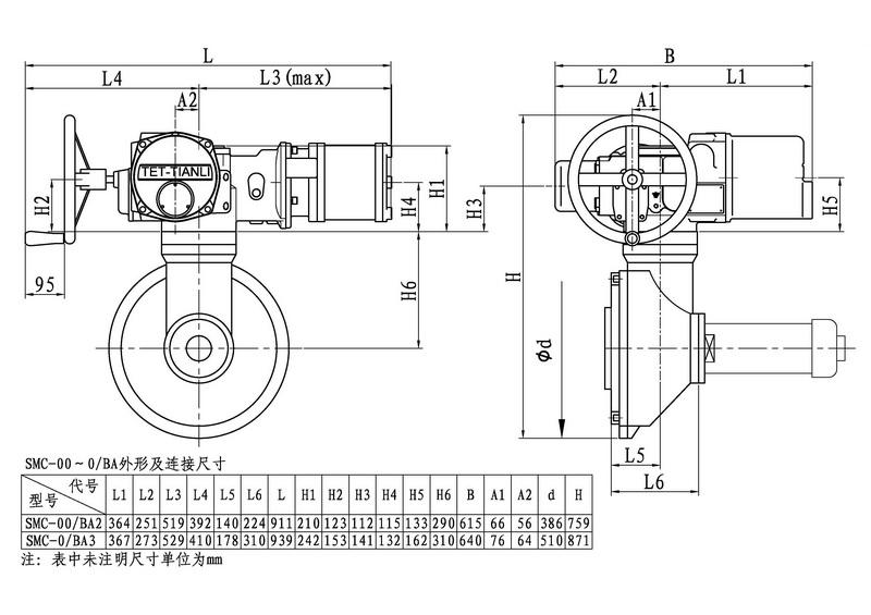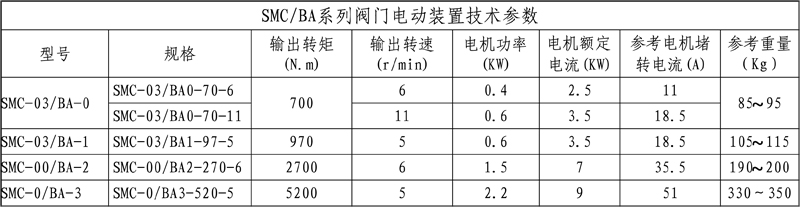 SMC/BA系列電動(dòng)裝置是SMC系列中小轉(zhuǎn)矩多回轉(zhuǎn)電動(dòng)裝置與BA圓錐齒輪減速器的一種組合型式,它適合閘閥、截止閥等多回轉(zhuǎn)閥門的驅(qū)動(dòng)控制。SMC/BA電動(dòng)裝置具有以下特點(diǎn):以較小轉(zhuǎn)矩規(guī)格的SMC電動(dòng)裝置與BA減速器組合可獲得更大的輸出轉(zhuǎn)矩。在輸出轉(zhuǎn)速允許的條件下,選用該產(chǎn)品能夠提高所選電動(dòng)裝置規(guī)格的通用性,便于產(chǎn)品的使用、維護(hù)。